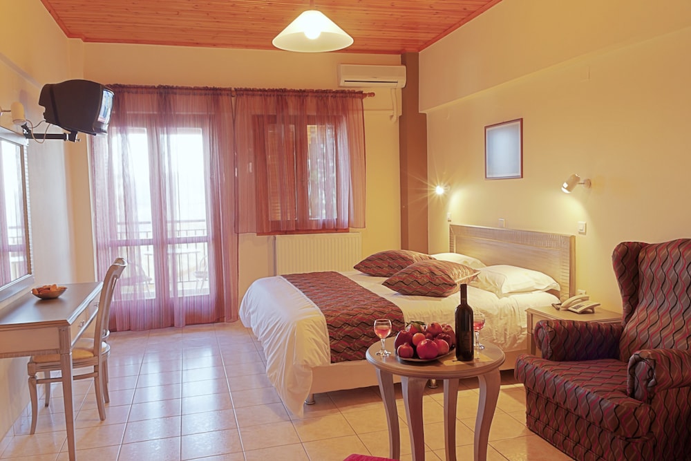 Situated in Thermo Town, Hotel Thermios Apollon features a lounge with fireplace and a traditional restaurant. Its outdoor pool area offers a sun-lounger terrace, and free Wi-Fi is available throughout.The rooms are simply furnished and equipped with heating and air conditioning. Each also offers a minibar and a TV. All rooms have private balcony overlooking the pool or the surrounding countryside.Breakfast is served daily at the hotel's lounge area. Thermios Hotel's traditional restaurant serves home-cooked Greek dishes.The hotel allocates a spacious private parking area, which guests are free to use. The area offers opportunities for mountain bike, rafting and hiking.