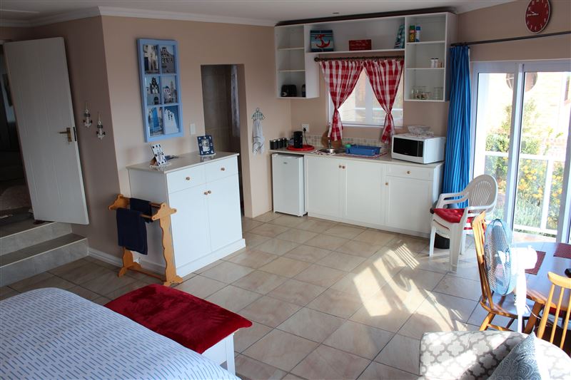 Situated high on the hill side overlooking Long Beach, The White House @ Kommetjie offers spectacular views into Hout Bay with the flat top of Table Mountain clearly visible. To the right is a clear view down the Fish Hoek valley with the Hottentots Holland Mountains in the distance. To the left is the wide Atlantic Ocean with Slangkop Lighthouse tucked around the corner.The private Seaview studio/apartment is fully appointed for a self-catering short or long stay. It consists of a bar fridge, microwave, kettle and toaster with crockery and cutlery, all to make your sta