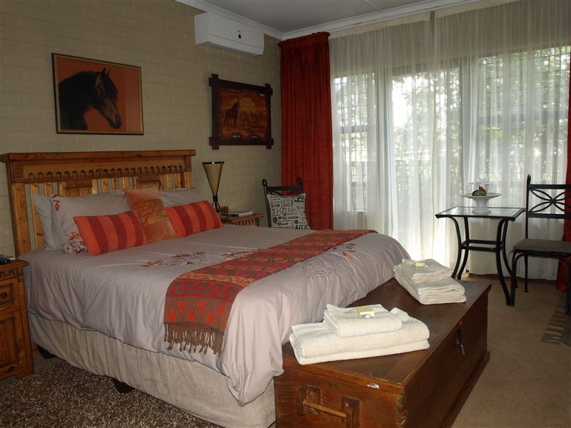 Tierra Pequena B&B is situated on a 2 ha, peaceful farm style estate situated in the suburb of Baillie Park. On a farm, yet in town!!This peaceful bed and breakfast offers a large and beautiful garden with an under cover braai and swimming pool. We also offer spacious and luxurious rooms uniquely decorated and themed featuring all luxuries, a kitchenette and en-suite bathrooms. An in-room breakfast is placed in the rooms for your convenience. Additional breakfast is served on request.Your hosts’ son is a South African Dressage Champion who trains at Tierra Pequena w