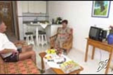 This lively apartment complex lies approximately 400 m from the excellent sandy beach Playa del Ingles, near to the Yumbo and Cita shopping centres. The centre, with its numerous restaurants, shopping and entertainment opportunities lies around a 10 minute walk away. The complex is conveniently situated for access to the public transport network.It comprises 140 apartments spread over 6 floors. Amongst the hotel's facilities count a currency exchange desk and a lift.The rooms come with an en suite bathroom satellite /cable TV, a kitchenette, a fridge, a hire safe and a balcony or a terrace.The hotel grounds feature a swimming pool with a sun terrace. Sun loungers and parasols are available for use on the beach (for an additional fee). The nearest golf course lies around 3 km from the hotel.