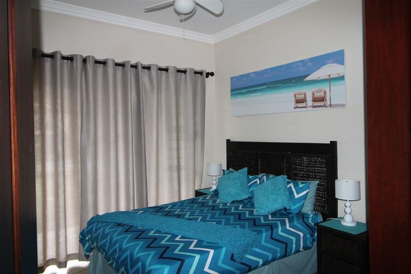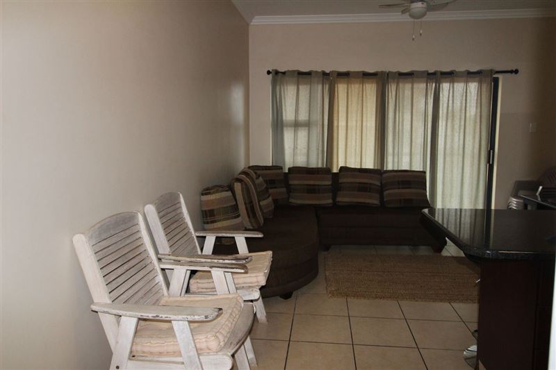 Topanga 8 is a self-catering apartment which is fully furnished, located in a secure Uvongo Beach complex; it can accommodate four guests comfortably.The apartment comprises two bedrooms; the bedrooms each feature a double bed and a ceiling fan, and there are also two bathrooms available. The rest of the unit has an open-plan layout; the lounge has comfortable seating, a TV and a ceiling fan, and opens out onto a balcony (including outdoor furniture).The kitchen comes fully equipped for all your self-catering needs, and, for your peace of mind, there is sec