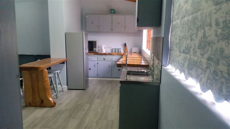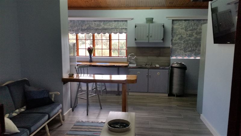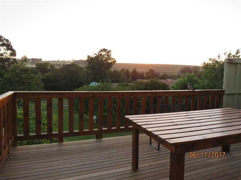 Caledon is Situated in town, but with a definite country atmosphere.Our self-contained, self-catering apartment forms part of the main house on the property, but has separate front and back entrances and a private section of the garden reserved exclusively for use by our guests. The apartment also has its own deck with a lovely view of the garden and animals. There is also access to the heated swimming pool.