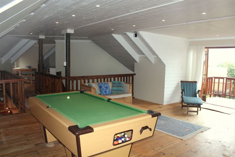 This Tranquil Holiday Home is situated in the quaint coastal town of Sedgefield, along the Garden Route.The unit has five bedrooms, accommodating twelve guests, and three bathrooms. The living area consists of a fully equipped kitchen, an eight-seater dining table, a lounge, an entertainment room with Dstv, sleeper couch and pool table, and an outside area with braai facilities. The abode also offers guests Wi-Fi Internet access, laundry amenities and parking on the premises. (Note - Ground floor has a separate self-contained flat which is permanently occupied by owners).Sedgefield has many gr