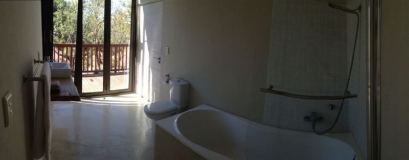 Tree Tops View Lodge is a fully self-catering family bush house situated in the Mabalingwe Nature Reserve near Bela Bela. The house was built by a nature loving family. Now you as well, can enjoy the bush and its animals. The lodge is not a usual thatched game reserve holiday home, but it has a strong European character and is very light and airy. The lodge has four double bedrooms and two bathroom en-suites, as well as a large dining area and a fully-equipped open kitchen. The front of the house with the lounge, opens up completely with concertina doors to