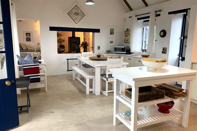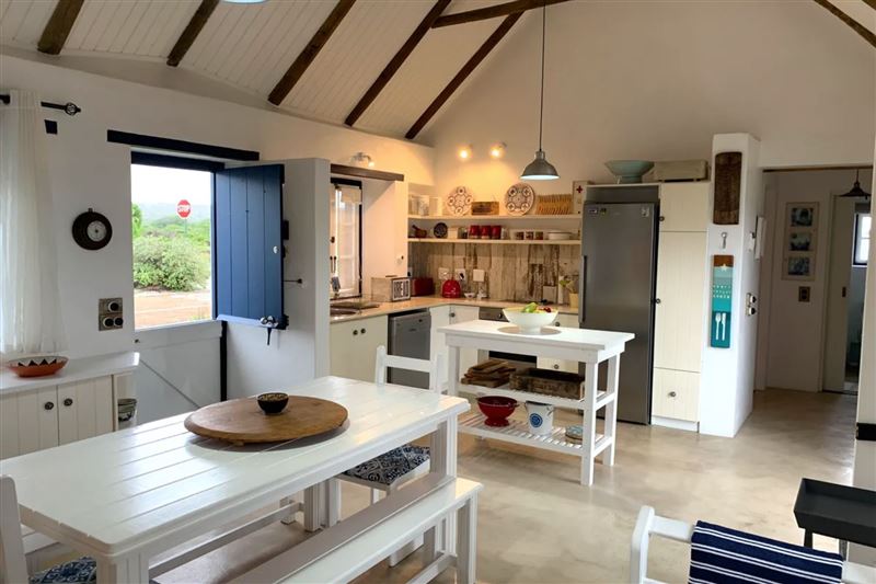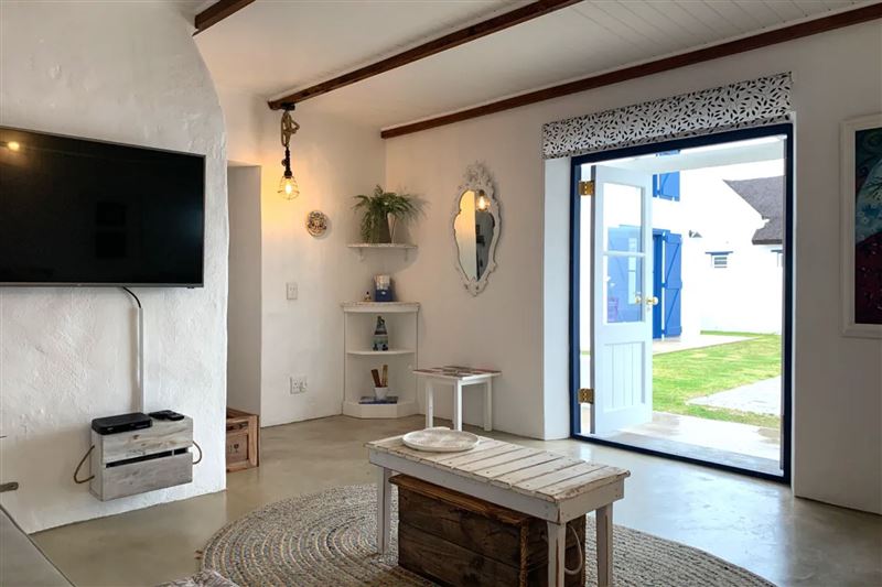 Trinacria is a modern-day fisherman's cottage located in the Langezandt Fisherman's Village in Struisbaai. This self-catering house can accommodate up to six guests and features a fully equipped open-plan kitchen/dining area with a microwave, fridge, stove, oven and a dishwasher. A washing machine, tumble dryer, chest freezer and additional fridge available in the garage. The lounge is equipped with a fireplace for the cold winter months. The main bedroom is en-suite with shower and bath and has a queen sized bed. Another room has two single beds and a separate bathroom with shower. The third