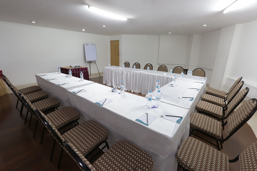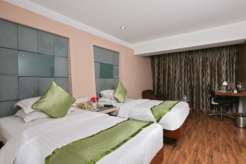 This 3 star hotel is located in the city centre of Bangalore. It is a short drive away from the Iskon Temple and the nearest station is n/a. The Hotel has a coffee shop and a fitness centre/gym. All 52 rooms are equipped with minibar, hairdryer, safe, ironing set and air conditioning.