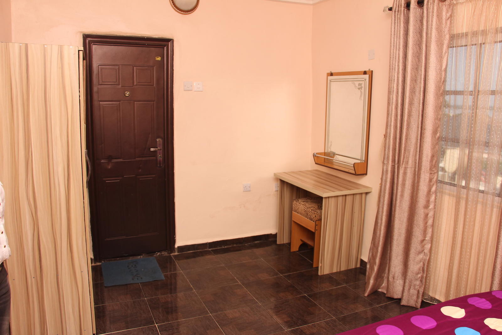 Twins Palace Hotel is located at Kabba town, in Kogi. The hotel is a short drive from Kabba main market and offers discounts on extended stay. Each room is fitted with an en-suite bathroom, a fridge and a TV with cable service. There is an onsite restaurant and bar where food and drinks can be ordered. The restaurant offers regular and buffet breakfast options. Laundry and business services are offered at a surcharge. Onsite and nearby parking are available, and security guards watch the premises of the hotel. Kabba main market is an 8-minute drive from