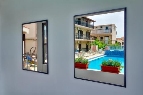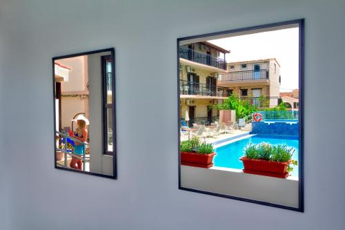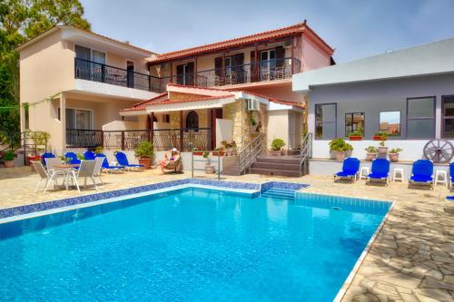 This guest house is located 200 metres from the centre of Kalamaki, where a variety of taverns and bars are located. The capital of Zakynthos is 7 km and Zakynthos Airport Dionysios Solomos is 5 km away. In the midst of vast greenery and just 1 km away from the sandy beach of Kalamaki, this hotel offers spacious accommodation with free Wi-Fi and a furnished balcony. Leisure options provided include a swimming pool with a children's section and a snack bar. The tastefully furnished studios are decorated in green tones and feature beamed ceilings and tiled floors. Overlooking the pool and the garden, each unit comes with air-conditioning and a kitchenette.