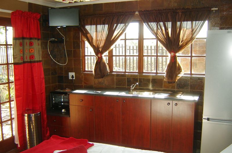 There is a swimming pool set in a pretty garden with seating under large trees. Pretoria is only a short drive away with all shops, restaurants and entertainment available.