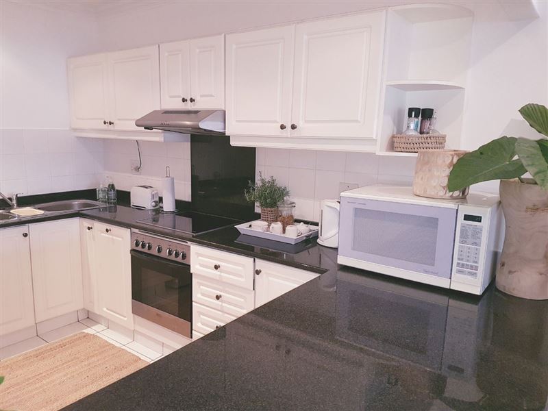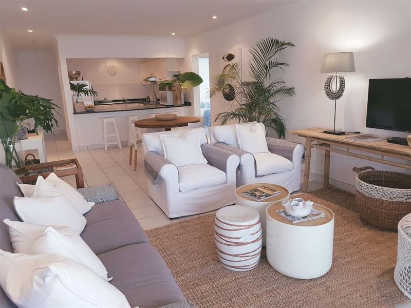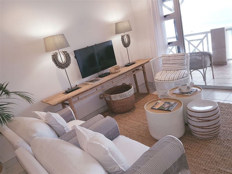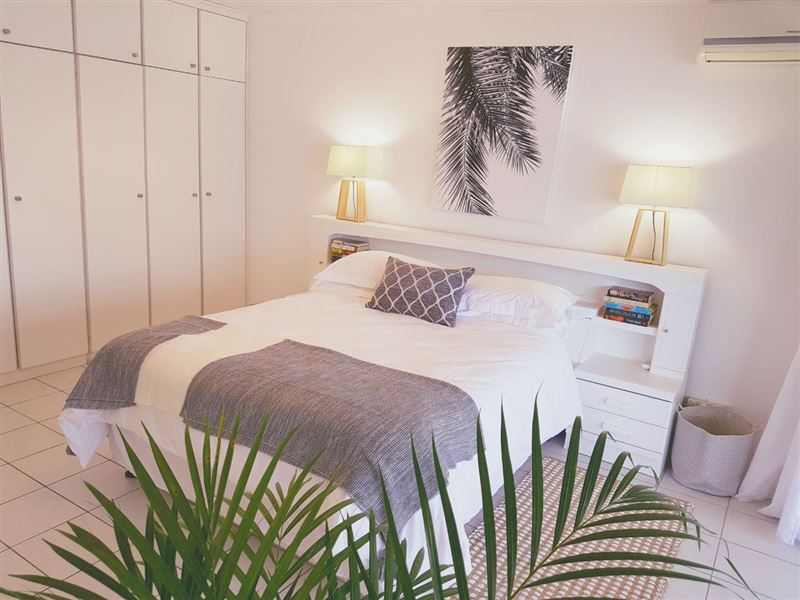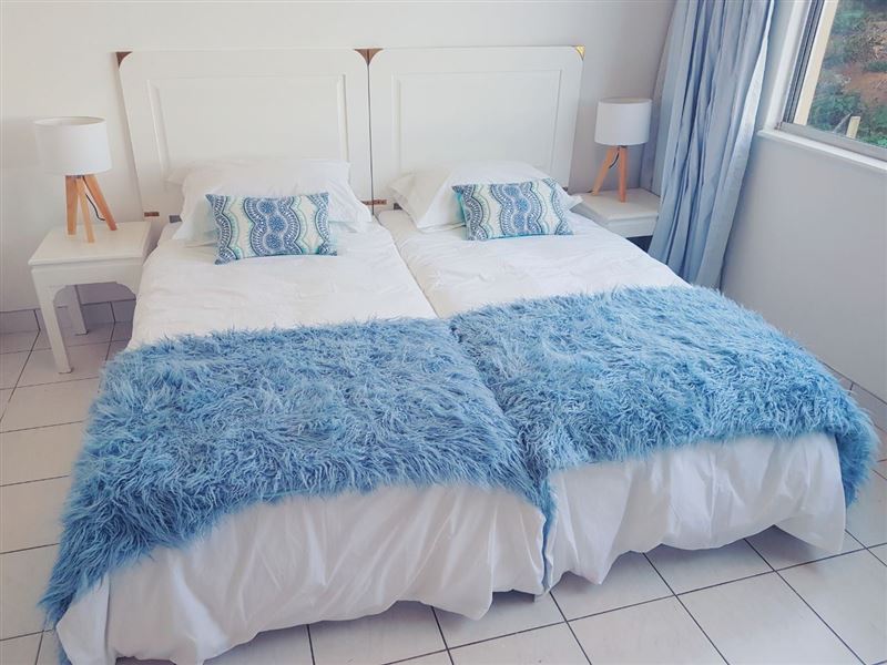 Right across the road from the beach and with a pool and braai area in the block, for windy or rough sea days.