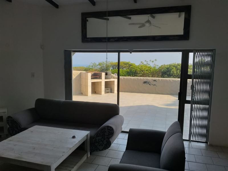 Umzumbe Sea View Paradise is a holiday unit in a secure complex in Umzumbe. It is just one kilometre from the beach.This self-catering unit sleeps six guests and comprises three bedrooms and three bathrooms. Each bedroom has a double bed and ceiling fan. The first and second bedrooms each have an en-suite bathroom with a shower and the third bathroom has a bath.The kitchen has a fridge, microwave, oven, stove and dishwasher. The spacious open-plan living area leads to a large balcony with a built-in braai.The complex offers a communal pool and secure parking