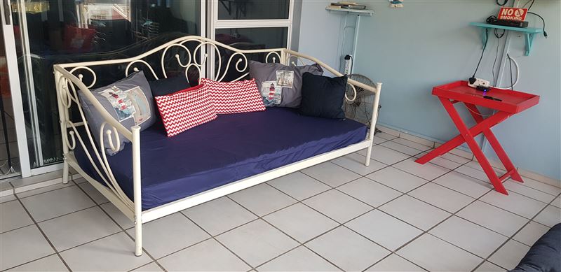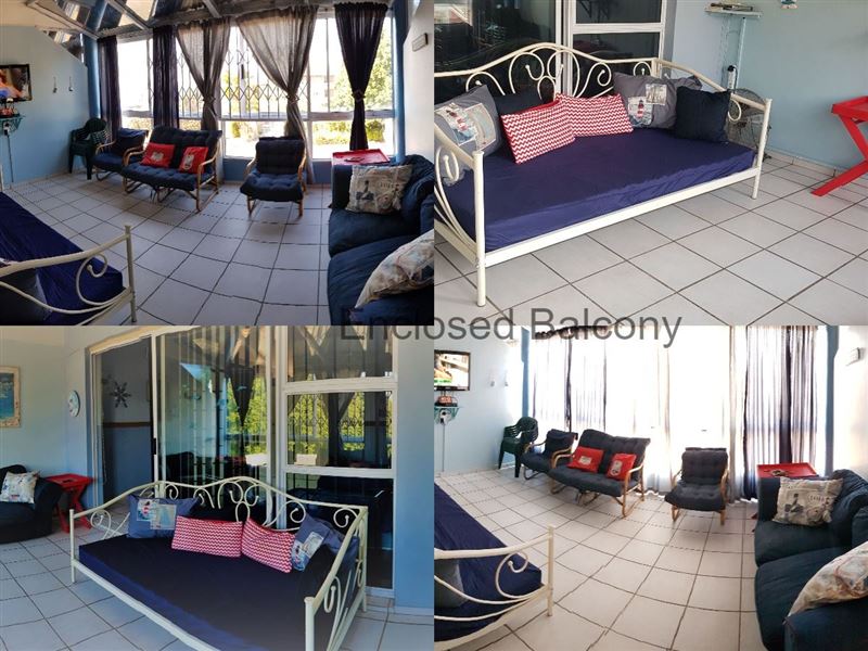 This modern complex located in the heart of Uvongo in the South Coast, Kwa-Zulu Natal. The unit is conveniently located on the first floor with easy access.Uvongo Square, can accommodate four guests and comprises of one bedroom with a double bed and en-suite, open plan furnished with twin beds. Linen provided for beds only. No towels provided. There is a double sleeper in the enclosed balcony for an additional two guests; that transform into the lounge area during the day. The rooms have built-in cupboards, and the en-suite bathroom is fitted with a basin, toilet, as well as a bat
