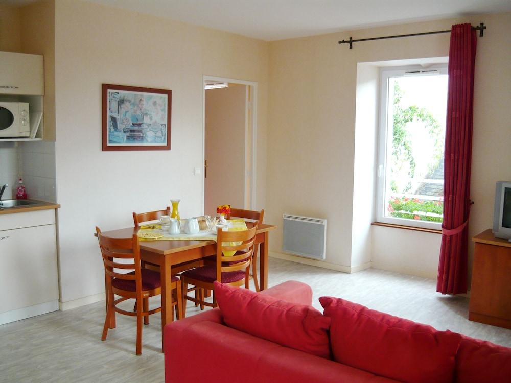 The hotel is located less than five minutes walk from Rochefort en Terres historic Grande Rue. The train station of Questembert is 10 km from the hotel.It offers spacious and furnished apartments and a heated outdoor swimming pool and internet. There are decorated with light decor and modern furniture, furnished in warm tones.