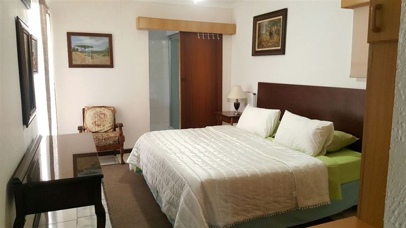 The ground floor is a fully self-catering apartment with an open-plan kitchen - dining - living room, 2 bedrooms, 1 bathroom with shower. In main bedroom king size bed en-suite bathroom (shower only), in spare bedroom one double bed 2 . Etv decoders, if you want to use your own dstv decoder bring with we can connect to dish . Own private entrance. Braai facilities. Parking under roof in front of entrance to apartment, behind electric gate. Top floor room has views from balcony over suburb gardens. King size bed in room, full bathroom ( shower and bath). Dressing room. Private entrance from ar