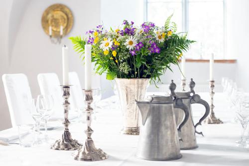 Overlooking Lake Vättern this elegant 16th-century manor is 5 km from Gränna. It offers gourmet cuisine a free tennis court and a large surrounding park. Gränna Golf Course is 150 metres away.Guest rooms are located in a refurbished 19th-century annex. Each room features a flat-screen TV with cable channels and a private bathroom with shower.The restaurant at Hotel Västanå Slott has a well-stocked wine cellar and serves Swedish cuisine based on fresh locally sourced ingredients.Guests can explore the manor's scenic park and surroundings. In the evening Västanå Slott's cosy library is an ideal place to relax with a book. Wi-Fi is free throughout the premises and free private parking spaces are found on site.Jönköping is about a half-hour drive from Västanå Slott Hotel.