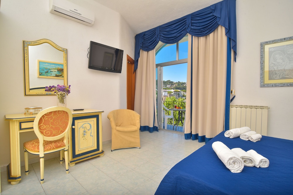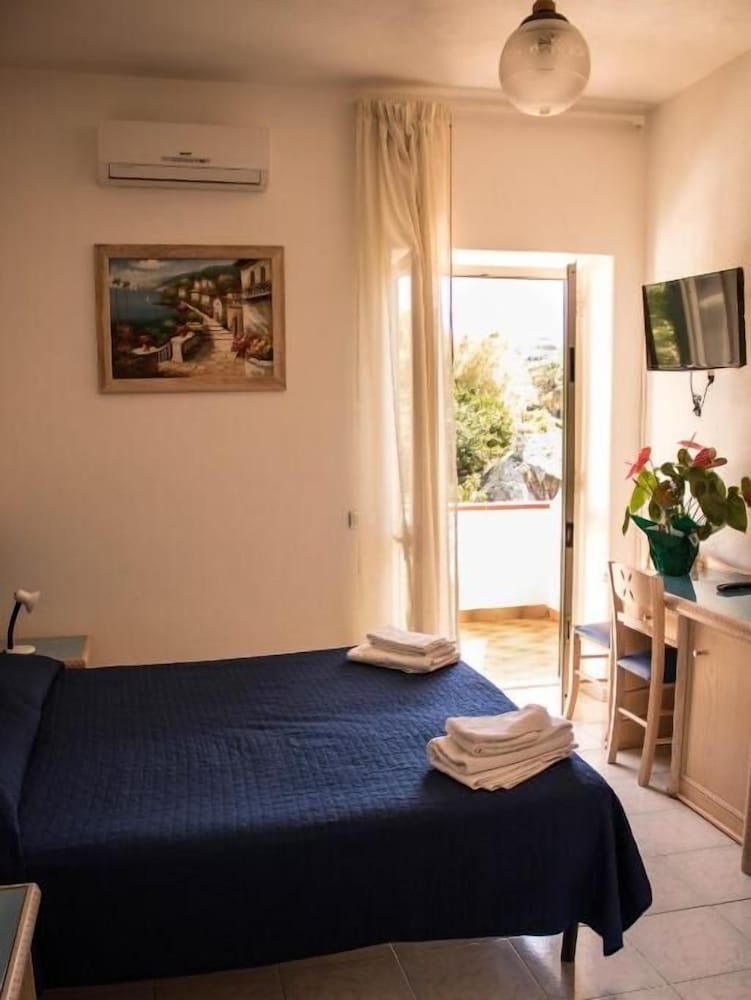 The Hotel Villa Cimmentorosso is a romantic hotel on the Bay of Citara, 800 meters from the sea and 1200 meters from the center of Forio. The Hotel is a fairytale paradise of colors and scents: around the Hotel there is a beautiful garden with colorful flowers, citrus trees and vineyards, while a little further in the sea ignites romantic sunsets.Courtesy and family friendliness are the characteristics of hospitality signed Cimmentorosso. The Hotel rooms are simple but comfortable, with rooms furnished in Mediterranean style and feature a large balcony affiacciano the garden or the placid marine horizons. The excellent gastronomic proposal of 'Hotel is based on delicious specialties of Ischia, with first products. For relaxation of its guests the 'Hotel offers a solarium with sun beds, deck chairs and parasols, and offers free use of the swimming pool.The Hotel is located just minutes from Citara Beach, Cava island, and the famous gardens of Poseidon thermal park.