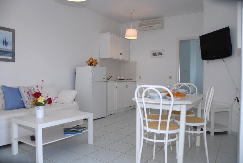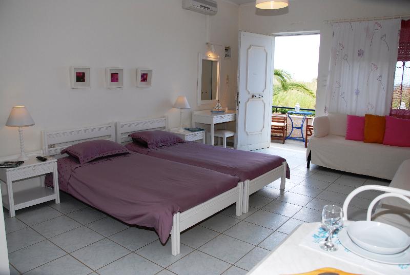 Villa Fleria seaside studios & apts provides the ideal environment for enjoyable and comfortable holidays in the magical Chania of Crete, in Greece. It is located on the beach of the traditional village Pyrgos Psilonerou, near the city of Chania, in a verdant setting just 100 meters from the sea. It consists of three studios and two apartments, all with balconies and a view to the sea. The only apartment situated in the garden, has an exclusive-use pergola.Villa Fleria creates ideal conditions for relaxation and combines the modern comforts of the rooms with an idyllic setting. It is surrounded by a blooming garden of 0.5 acres, full of roses, bougainvillea, jasmine, geranium, pomegranates, fig trees, which create a wonderful cocktail of colours and fragrances. Here you can enjoy your breakfast, a cup of coffee or a drink; you can read a book, enjoy the sun on comfortable sun beds .