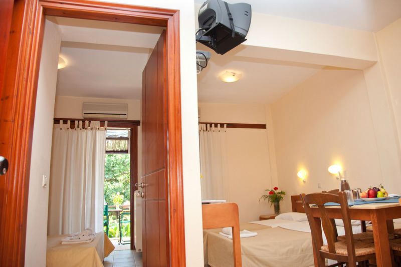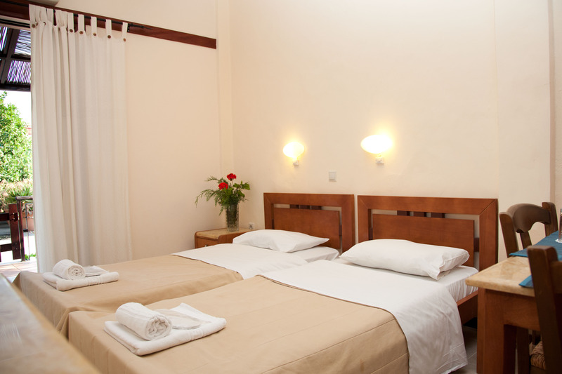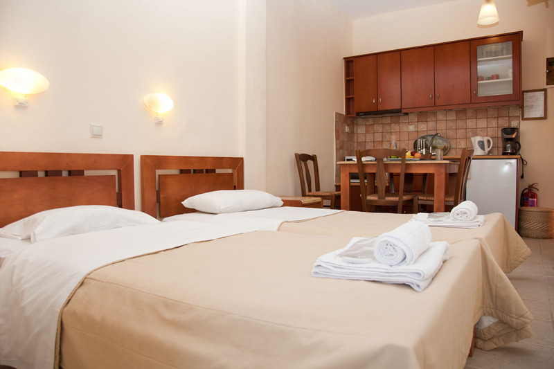 Situated on a charming street, which ends right at the beach and featuring small but fully functional units, this villa will make travellers feel like home. The units have a fully equipped kitchenette area, and guests can serve their own homemade meals at the dining room table or outside, on the furnished patios, where they can wine and dine, while watching the night life of the beachfront area. Alternatively, tourists can take a stroll around the picturesque village and find a local tavern for an authentic Greek dinner. With air-conditioning, hot water and TV, these lovely apartments leave nothing to be desired.