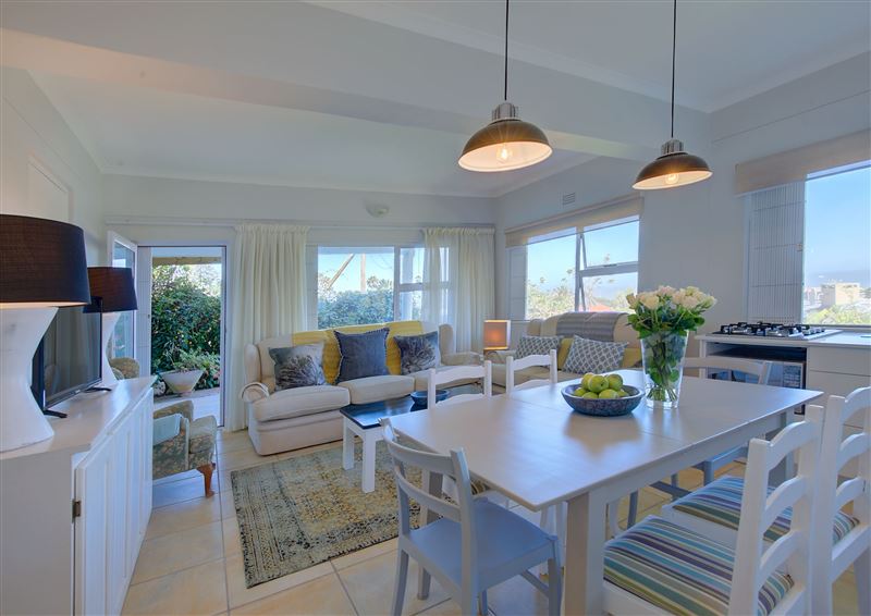 Lie on a porch-swing and listen to the waves crash onto the beach in Wilderness.Villa Lolla B is a beautiful self-catering ground floor unit, comprising 2 bedrooms and 2 bathrooms, with sea views from the porch-swing patio and kitchen. Situated in central Wilderness, so you can walk to the beach, restaurants and lagoon.The main bedroom is furnished with a queen-size bed and has an en-suite bath, shower, basin and toilet. The second bedroom is equipped with 2 single beds and has a en-suite shower, basin and toilet. In addition the main bedroom has a pull-out couch/bed f