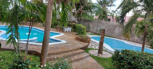 Featuring a lush garden with a pool Villa Mela Hotel is located in Malindi within 500 metres of the Indian Ocean. It has a restaurant and a bar and offers massages and a fitness area.Each room at the Villa Mela faces the pool garden and includes typical wooden beds equipped with mosquito net. They are all air conditioned and come with a private bathroom fitted with bath shower and hairdryer.The restaurant offers specialities from the local area mixed with classical international dishes. Barbecue facilities are also available for those guests who prefer outdoor meals.Silversands beach is only 5 minutes' walk away while the Malindi Marine National Park is 500 meters away. The local airport is 4.5 km away and the hotel can arrange a shuttle service upon request.