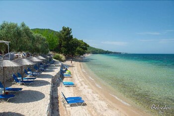 The hotel is situated on the north coast of Thassos Island, amongst olive groves with views over the North Aegean Sea. Only 200 m away there is the gulf of Glifoneri, a place of natural beauty covered in pine trees next to the coast. The organised beach of Pachis is only 300 m from the hotel. There are numerous restaurants in the neat vicinity, whilst bars and shopping opportunities are about a 15-minute walk away. Kavala Airport is about 20 km from the hotel.The hotel consists of two 2-3 storey buildings featuring modern architecture and offering luxury services. Guests can enjoy a drink and admire the sunset from the bar. The family-friendly hotel consists of a total of 28 rooms. Facilities include a lobby, currency exchange facilities, a children's playground, café, restaurant and a car park.The hotel features 2-bed, 3-bed and 4-bed rooms, equipped with air conditioning, a satellite/cable television, direct dial telephone, safe and a fridge. Each is en suite with a shower and hairdryer. Some of them have a fully equipped kitchen. Individually regulated air conditioning and a balcony/terrace also feature as standard.The hotel features an outdoor swimming pool with a poolside snack bar, sun loungers and parasols. The nearby beach is sandy.The restaurant serves a breakfast buffet, à la carte lunch and set menu dinner.Thassos Island does not have an airport. However, the Kavala International Airport (20km) is situated on the mainland just opposite the island with regular ferry connections from Keramoti Port to Thassos Town. From Thassos Town the hotel is about 7.7 km away - just take the coastal road westbound via Glyfada village until reaching Glifoneri.