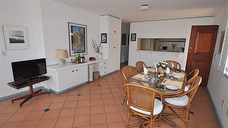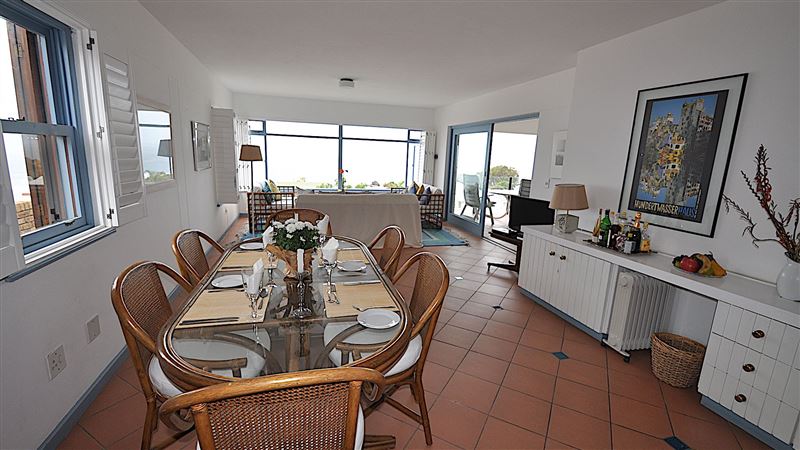 The open plan living and dining area open to a covered patio where you can sit back, relax, take in the view and breath in the fresh ocean air.