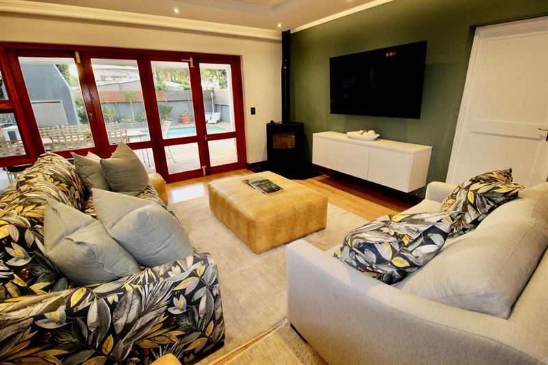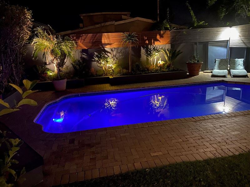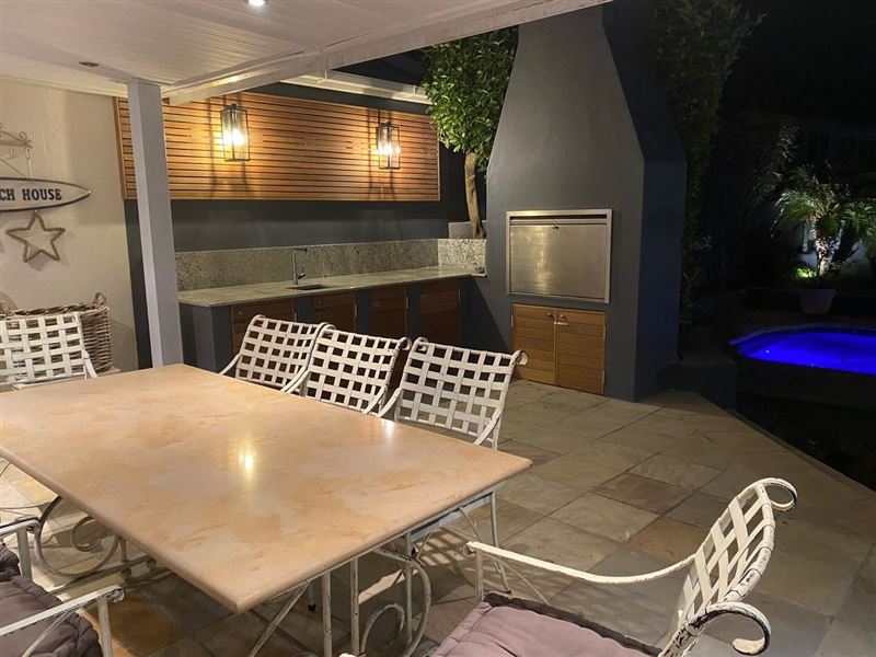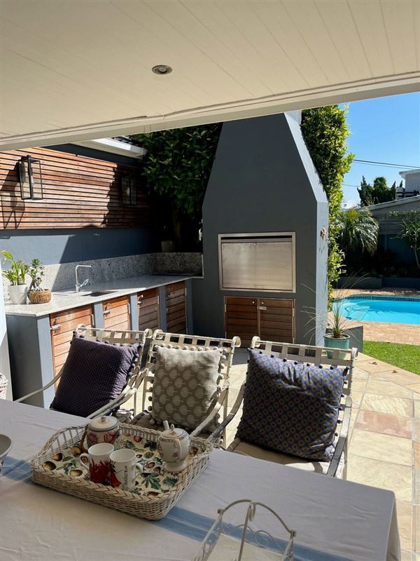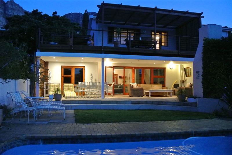 Villa On the Bay enjoys a fantastic location, just a minute’s walk from the Camps Bay beachfront. This luxury holiday home is a stylish modern villa offering every comfort for discerning guests, including a wonderful bar area and outdoor living area for parties and entertaining, as well as a solar heated pool.The villa features an elegantly furnished open-plan living room and dining area, four luxury bedrooms with bathrooms or showers, a well-equipped kitchen with all modern appliances, and a guests' shower downstairs. The house is also equipped with satellite TV, a VCR and Hi-F