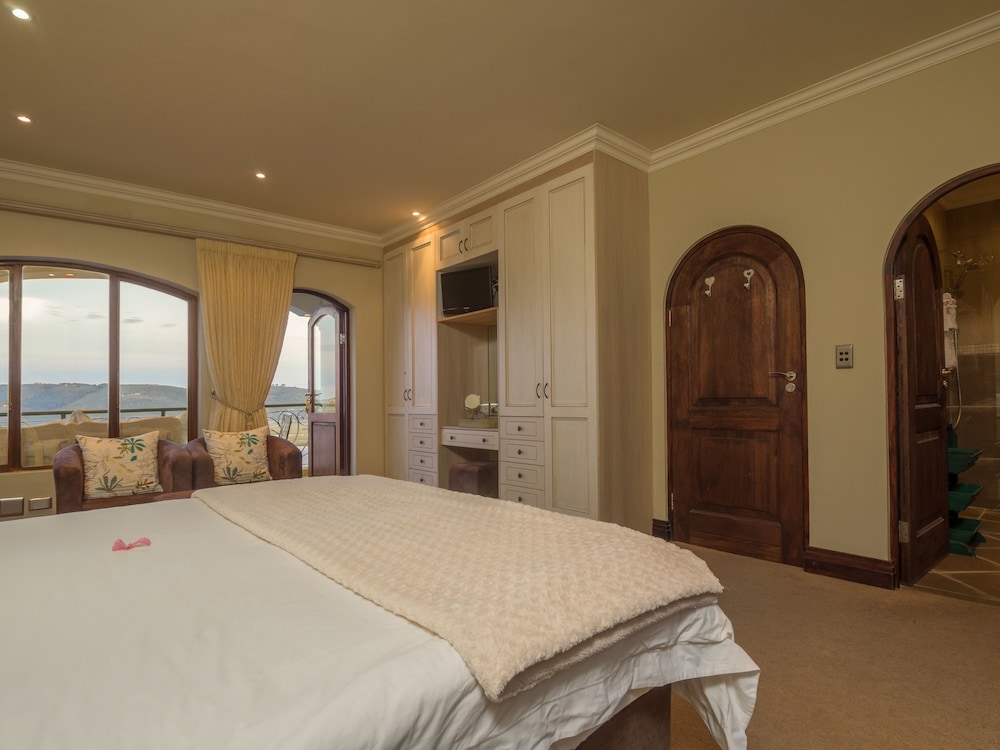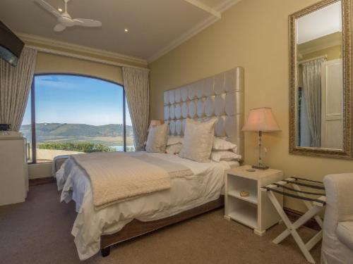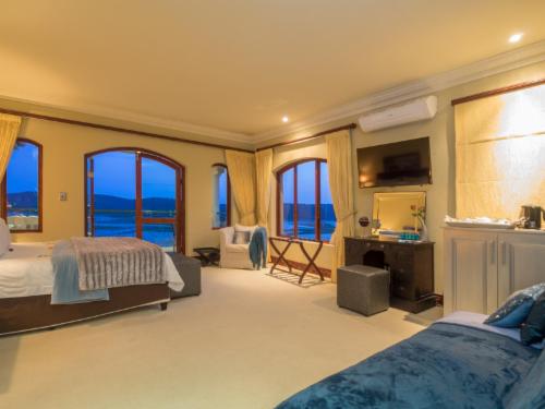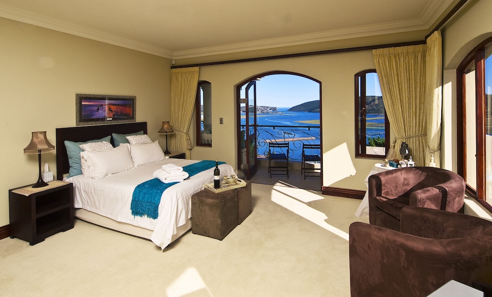 Villa Paradisa Guest House offers exclusive, luxurious accommodation with stunning panoramic views of the famous Knysna Heads and lagoon.The perfect place to spend your holiday, honeymoon, or romantic getaway, relaxing at the rim flow pool or in the jacuzzi, while gazing across the lagoon with its ever-changing tides and moods. Villa Paradisa is just minutes away from the Waterfront and village centre, and is an ideal base from which to explore all that Knysna and the Garden Route has to offer: beautiful beaches, boating, fishing, waterskiing, canoeing, whale-watching, abseiling, p