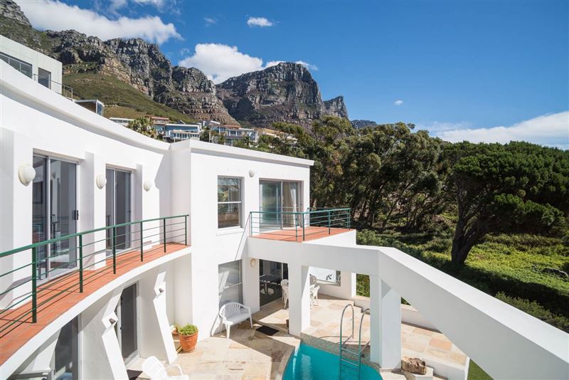 Villa Penelope at Funkey is an ideal family luxury villa set in the beautiful surroundings of Camps Bay. This secure and fully serviced property offers wrap-around views of the Atlantic Ocean, the Twelve Apostles, Table Mountain and Lion’s Head. It is a unique property which borders a nature reserve and a beautiful mountain stream.The villa consists of four bedrooms and three bathrooms. The bedrooms are fully furnished to high standards and they come equipped with king-size or queen-size beds and deck views over the ocean. The kitchen is fully equipped for self-catering and laundry facilit