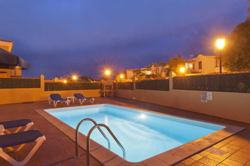 This elegant apartment complex is situated approximately 2 km from the sandy beach and the dunes, 38 km from the airport. Corralejo with its many bars, restaurants, shops and entertainment venues is just 15 minutes away. The complex is well situated for access to the public transport network with stops located directly in front.The resort has 50 villas on 2 floors with 2 bedrooms and sleeps 4. Each is equipped with parking and swimming pool (heated in winter for an extra charge). The large garden is also the terrace, barbecue, sunbeds and parasols. It provides laundry, cots (on request) and car rental.The modern apartments all come fitted with an en suite bathroom, a living room, a bedroom, a dining room and a kitchen which includes a cooker with an oven, coffee machine, a toaster, a kettle, a microwave, a dishwasher, a washing machine, a DVD player, an iron, satellite/cable TV, a hi-fi stereo system, a fridge, a hire safe and a balcony.