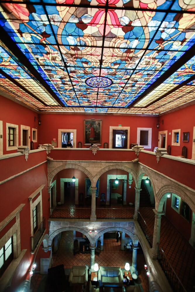 This hotel is located in the historic centre of Morelia. It is located on the main square, close to the Cathedral, the museums, the government buildings and the town centre offering a range of shopping facilities, restaurants and nightclubs. A bus stop is located in front of the hotel (around 20 m away).Built in 1744, this charming hotel is spread over a main building and 2-storey annexe blocks, comprising 55 rooms, 14 suites and 3 apartments. Guests may make use of the foyer with 24-hour reception desk and a safe. Additionally, guests will find a bar, a restaurant, 3 conference rooms and a bicycle storage facility. Room and laundry services are also available. Guests are offered use of a car park and garage facilities.The comfortable rooms come with a bathroom with hairdryer, a direct dial telephone, satellite/ cable TV, Internet connection, a double bed, a hire safe, a balcony or terrace and a sitting area.Guests may choose to play golf on the course 10 km away.Guests may serve themselves breakfast from a buffet. Lunch and dinner may be selected from the à la carte menu or alternatively chosen from the set menu. Guests have the opportunity to book either a half-board, or a full-board stay.