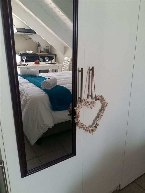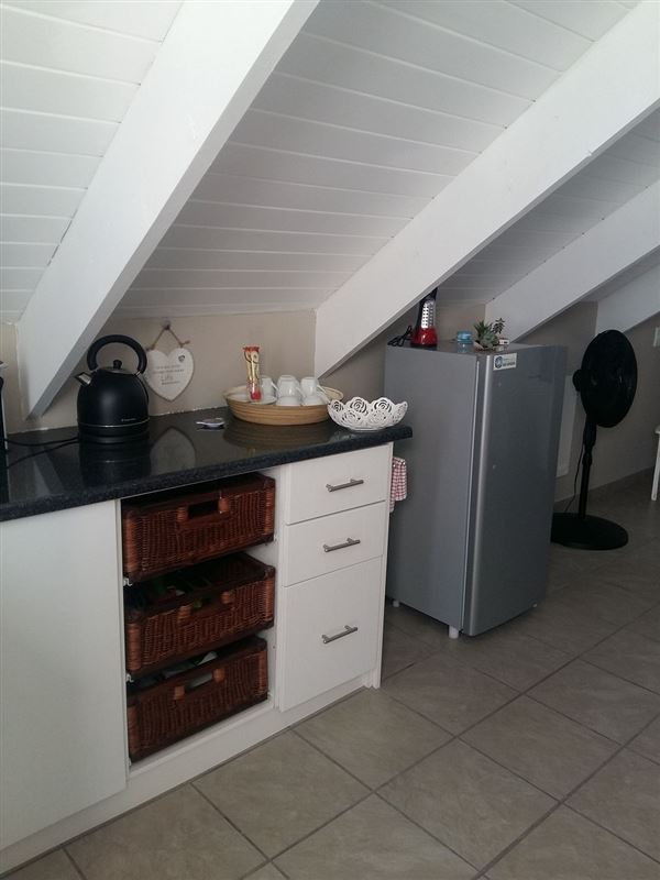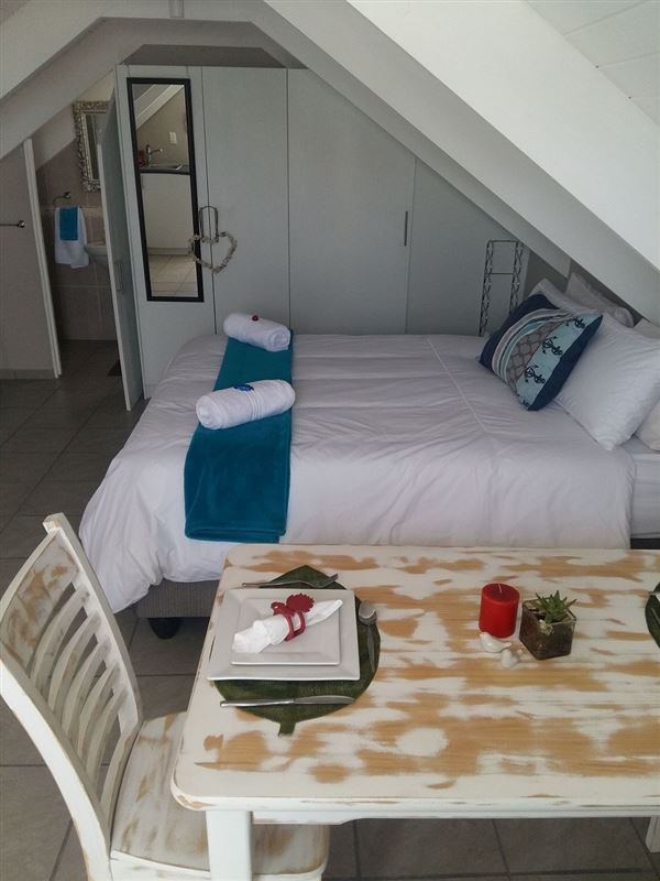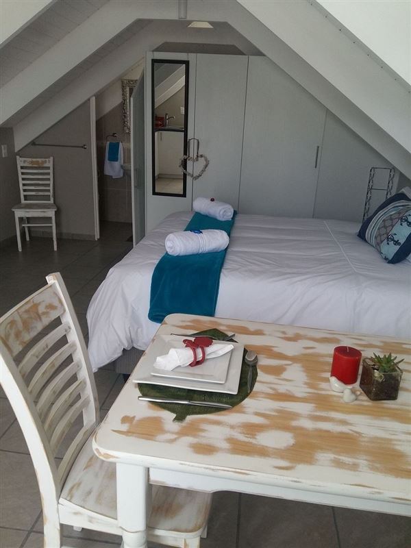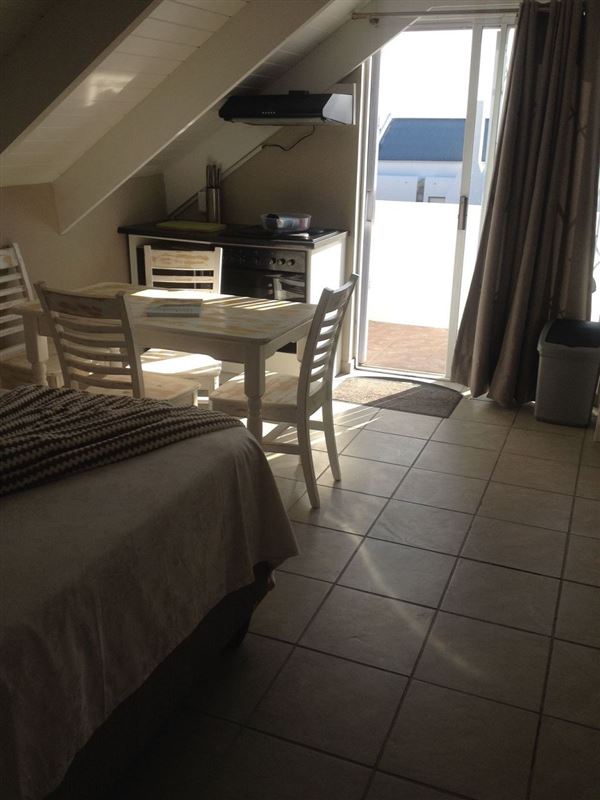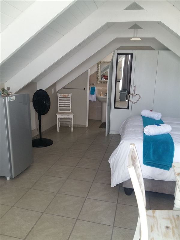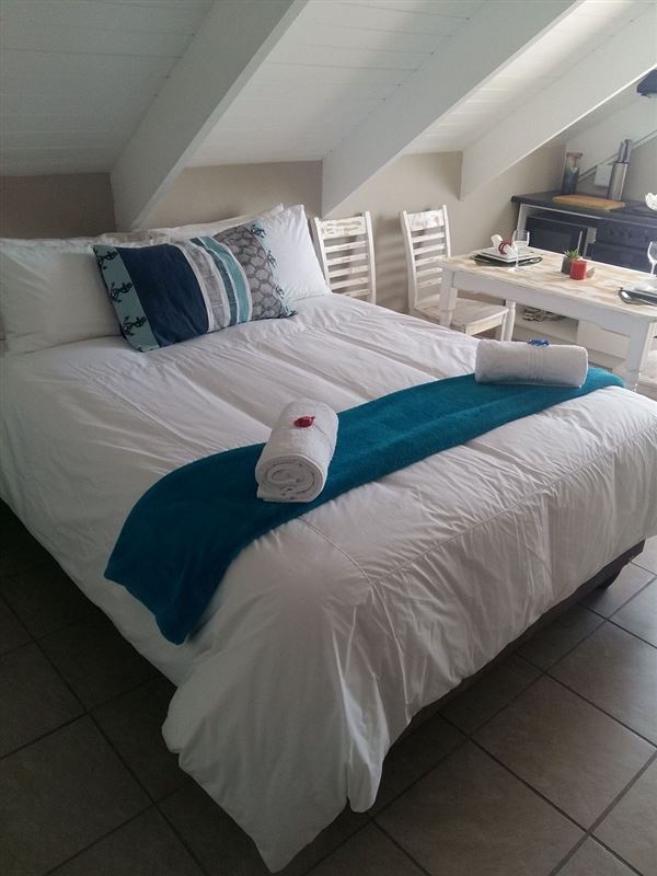 Fisherman Loft is a tastefully decorated studio apartment in Paternoster, an old-world fishing village on the West Coast. The town is a well-known tourist destination for visitors looking for a Mediterranean-style atmosphere, characterized by blue waters, whitewashed cottages, traditional fisherman architecture and endless white sand beaches.This open-plan studio apartment can accommodate two guests and a separate entrance from the main house. There is a queen-size bed in the sleeping area and an en-suite bathroom with a shower.The unit is equipped with a ba