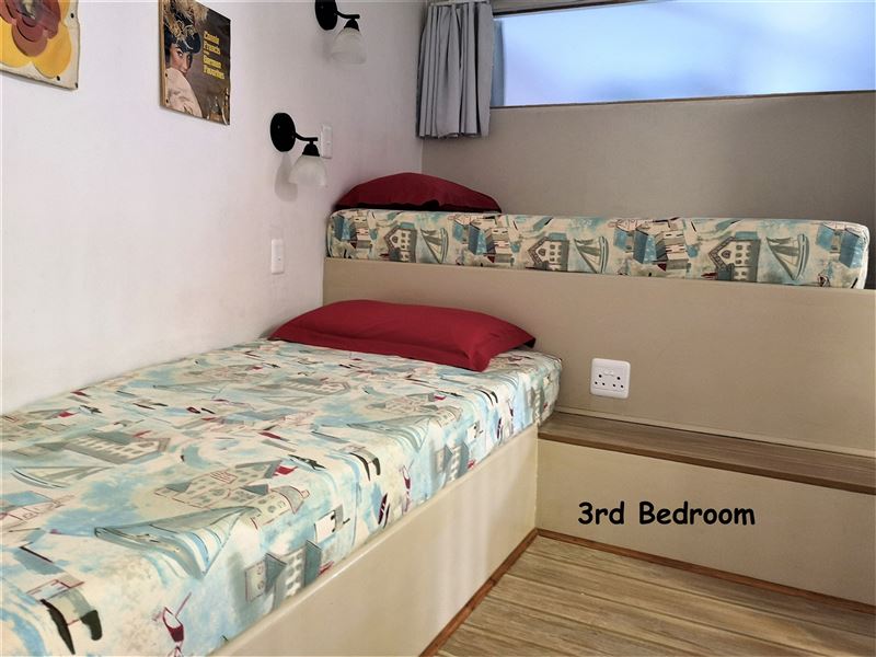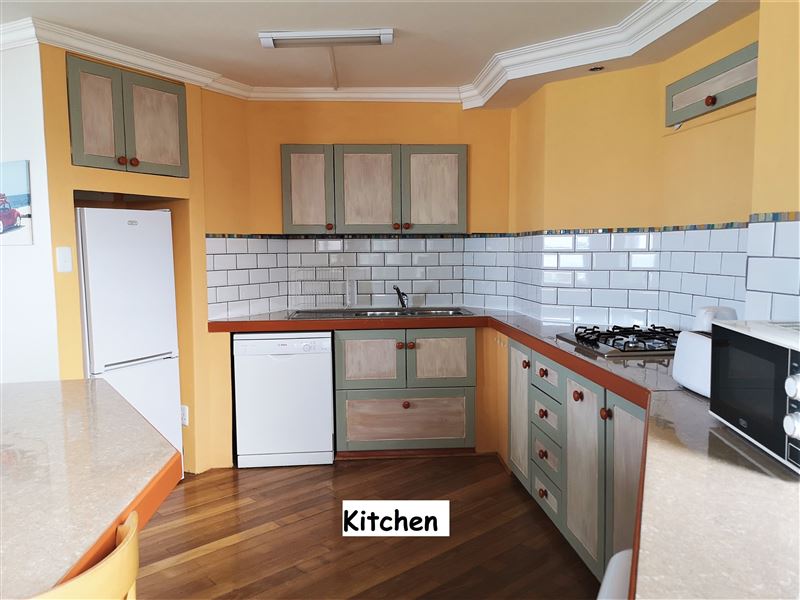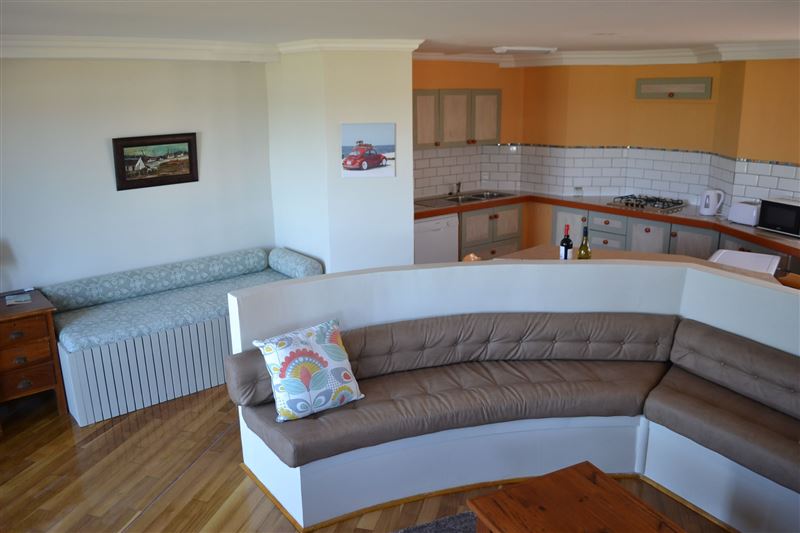 Waterkant 2 is situated in Jeffreysbay on the beach front within walking distance to the main beach, surfing spots and supermarkets and restaurants. The apartment offers comfortable accommodation for up to six people. The self-catering apartment has three bedrooms and two bathrooms. It has an open plan designed with lounge, kitchen and dining area. The kitchen is fully equipped for self-catering with all modern facilities including a washing machine, a microwave, a gas stove, a small convection oven and fridge/freezer. All bedding towels and cutlery and crockery are included. T