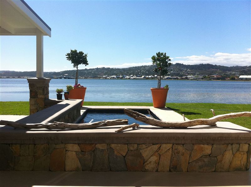 Water's Edge is a luxurious self-catering home with lovely water views and is designed for laid back easy living. It’s time to take your shoes off and relax in this light and spacious holiday home.This four-bedroom house sleeps a maximum of six adults and two children comfortably. There are three bathrooms; two en-suite and the third a full bathroom. Enjoy the open-plan modern kitchen that leads onto the entertainment area. This large living area has stunning views over the Knysna Lagoon and there is a separate TV and games room for the children. A scullery and separate laundry makes life easi