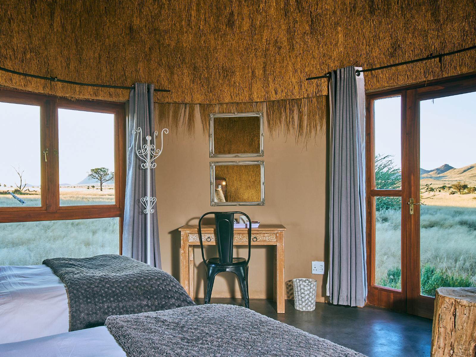 In the almost forgotten tongue of the San Bushmen, We Kebi means ‘invitation’; to hold true to the tradition of the San people of the desert, who roamed the plains and mountains surrounding We Kebi for thousands of years. We invite you to come and experience the solitude, privacy and tranquility at We Kebi Safari Lodge. Our wish for each of our guests is to give them the opportunity to experience individual and luxurious accommodation in a real African setting. Each of our free-standing luxury en-suite chalets has its own pavilion and 180-degree uninterrupted views of the surroun