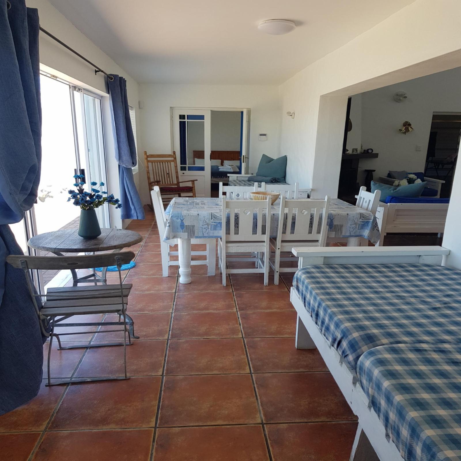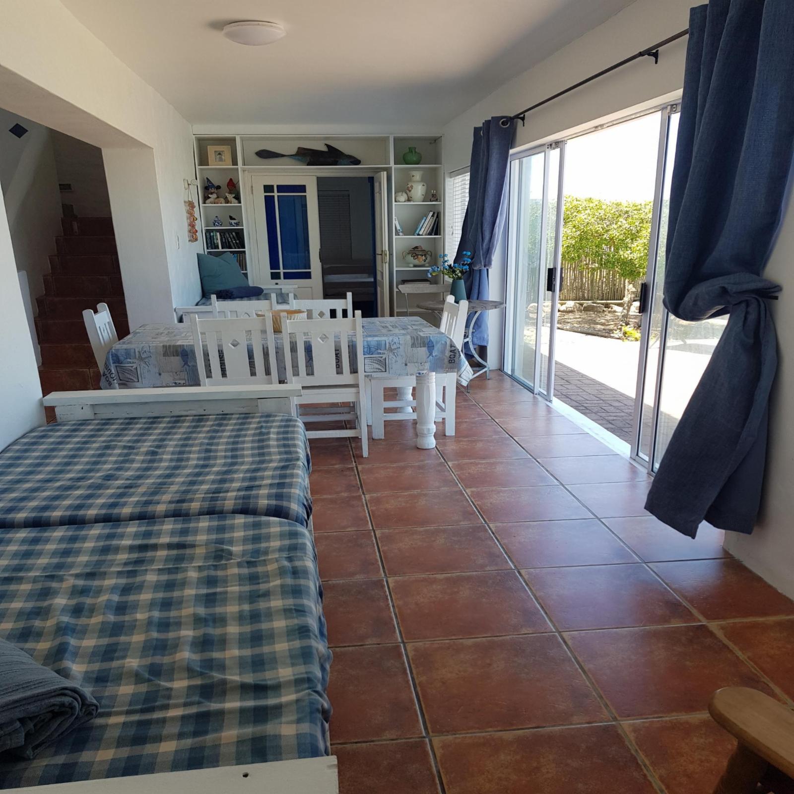 Whale Tale is a lovely beach house situated in the beautiful and quiet town of Yzerfontein, only a short walk to the beach. It has beautiful views of the ocean, Table Mountain and Dassen Island. We offer a rustic self-catering house suitable for families and small groups of friends. The house comprises 4 bedrooms and 3 bathrooms. The first bedroom has a double bed with en-suite bathroom and the second bedroom has 1 three-quarter bed. The third bedroom has 2 bunk beds and the fourth bedroom has a double bed with an en-suite bathroom. The open-plan living area has comfor