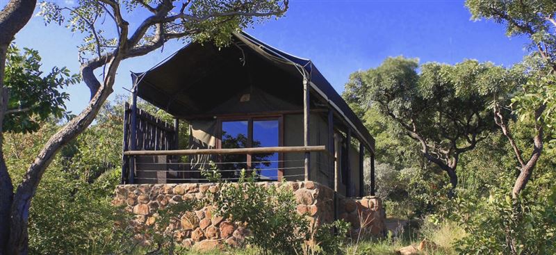 Accommodation is in luxury tents which are more like canvas lodge rooms with lovely views and very well-acquainted bathrooms. Large double beds and outside lounges allow you complete comfort and relaxation in a true wilderness setting. Dinners are around the campfire and traditional South African meals are served in the main lodge. Self-catering group packages are also available. The rates include two game activities with one of our game rangers.