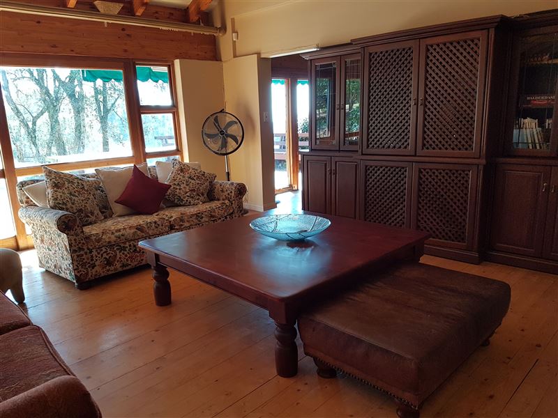 Woodmere Lodge is a luxurious twelve-sleeper house, set amongst indigenous rain forests and pine plantations. The house consists of a fully equipped open-plan kitchen, dining and living area with DStv and a fireplace. Guests can enjoy walks and birding on the farm, or just relaxing by the pool, and the area also offers trout and bass fishing, boating, hiking, mountain biking, and adventure sports. The shops and restaurants in the village are open daily, and there is a nearby cheese-making tour and a lovely cherry blossom nursery to walk around in for the food-lover. Come to our