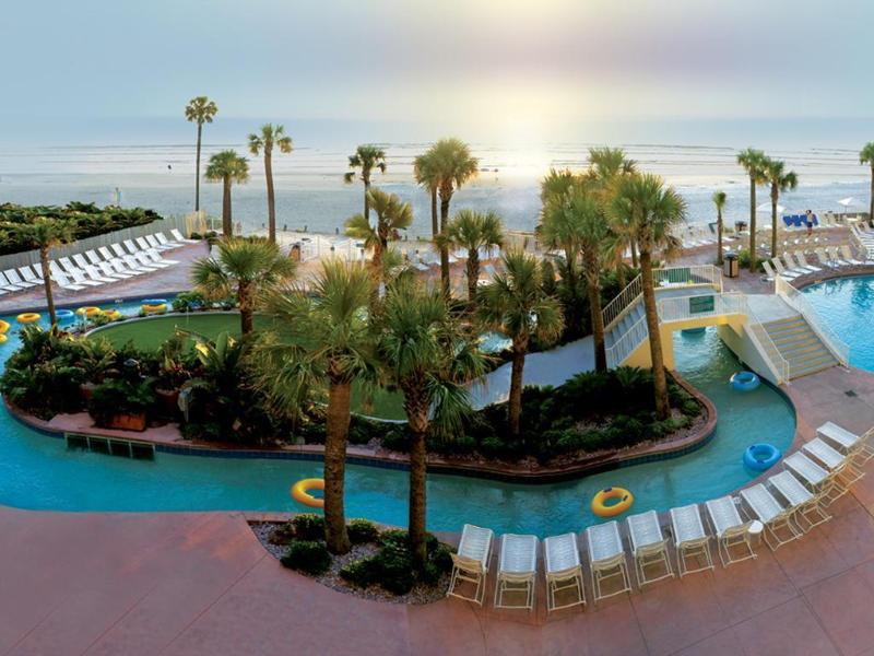 The WorldMark Ocean Walk is located directly on the beach with a marketplace, food court, lobby bar, exercise room, indoor pool, arcade, gift shop and activities center. You will also find an outdoor pool, Jacuzzi, lazy river and waterslide. Adjacent to the property is Daytona's newest boardwalk with shops, theatres and the Bandshell Amphitheater.