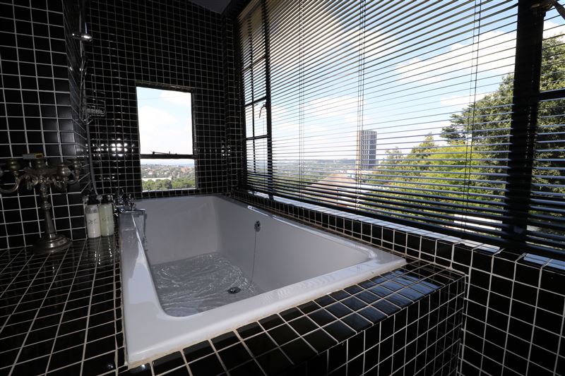 Zietsies has arguably one of the best views in the City of Gold. Situated on the highest ‘koppie’ in Johannesburg (in the suburb of Auckland Park), the view stretches over the North of the city all the way to the Magaliesburg, 70 km away. During the day you have the greenery of the city’s seven million trees at your feet and at night, a fairyland of lights.The guest house has three beautifully appointed en-suite bedrooms and a loft suite, each with a design and character of its own.The dining room has been built with glass and steel, creating a ‘conservatory-feel’. The dining room